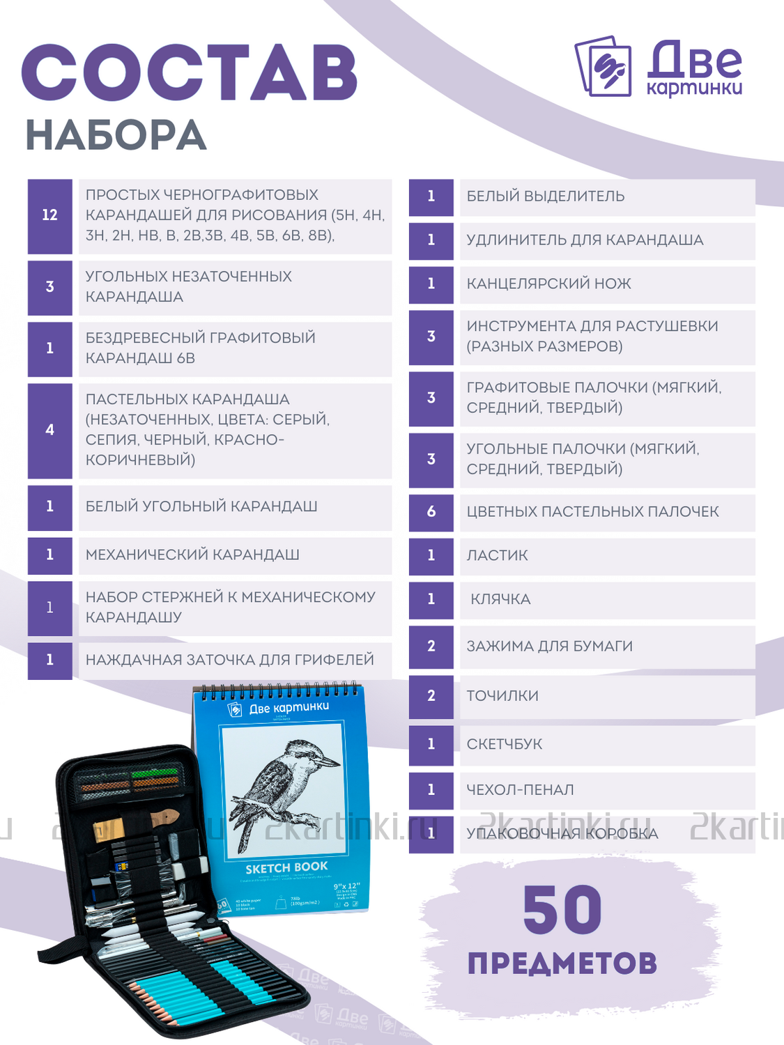 Рисование и канцтовар «Коробка 12 шт.: Набор для скетчинга в чехле: карандаши, грифели (50 предметов)» размером см. купить по выгодной цене 1 917 ₽ с доставкой по Москве и всей России.