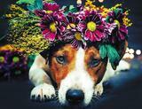 Алмазная вышивка «Милый пёсик с веночком из цветов» 40x50 см