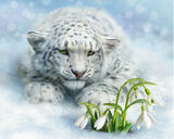 Алмазная вышивка «Снежный барс и нежные подснежники» 17x22 см